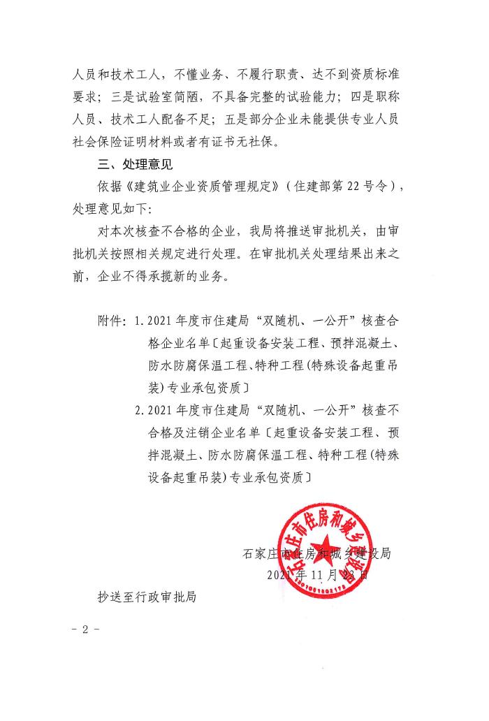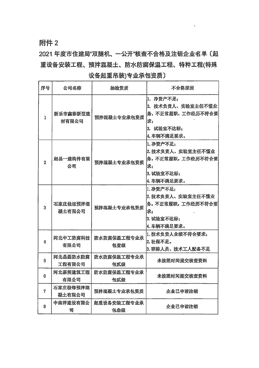 关于2021年度防水防腐保温工程等建筑业企业双随机一公开核查情况的通报