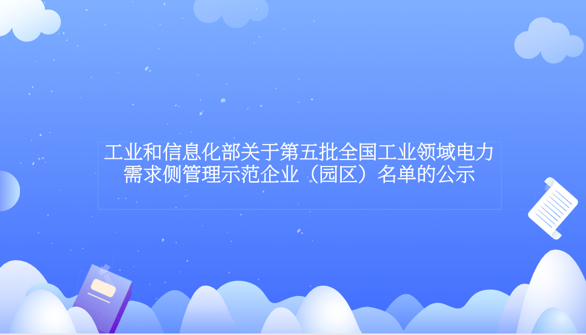 工业和信息化部关于第五批全国工业领域电力需求侧管理示范企业(园区)名单的公示
