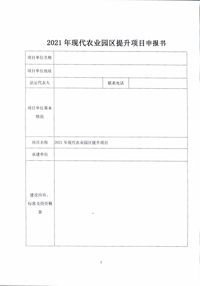 附件∶ 2021 年现代农业园区提升项目申报书